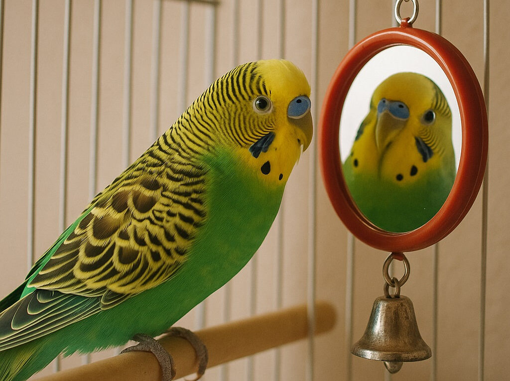 Lustro może w pierwszym odruchu wydawać się idealnym rozwiązaniem – papuga widzi „drugą papugę” i natychmiast się nią interesuje. Ale czy naprawdę wie, że to tylko odbicie?